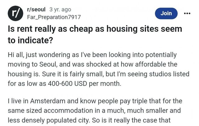 [ 네덜란드 암스테르담에선 서울보다 인구밀도가 낮은데도 최소 3배 월세는 낸다는 레딧 유저 ]