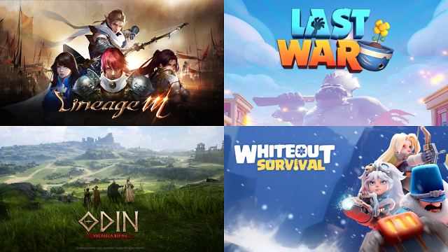 由左上至右下顺时针一次为《天堂M》《最后的战争:生存》《寒霜启示录》《寒霜启示录》《奥丁:英灵殿崛起》游戏海报。【图片来源 网络】