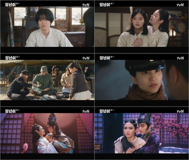 그렇지만 '자명고'가 클라이맥스에 치달은 가운데 정년이가 대형 사고를 치고 말았다. '군졸1'이 적국의 침입을 다급히 알려야 하는 장면. 지문에 맞춰 무대 위로 뛰어올라온 정년이는 객석에서 낯익은 얼굴들을 발견했다. 그들은 앞서 급식소 봉사현장에서 만났던 한국전쟁 참전 군인들이었다. 그 순간, 전쟁의 고통이 생생하게 되살아난 정년이는 상황에 과몰입해 버린 나머지 '군졸1'임에도 불구하고 무대 위에서 절규를 해버렸다. 그리고 정년이의 연기에 빠져들어버린 관객들은 "가만히 서 있지 말고 뭐라도 해라", "소리를 해라"라는 주문을 쏟아냈다. 이에 무아지경에 빠져버린 정년이는 마치 깊은 한을 토해내듯 적벽가의 '군사설움'을 열창해 극장 안 모든 것을 자신의 소리로 집어삼켜 버렸다. 이로써 "튀려고 하지 말라"는 소복의 주문을 어기고 일순간 무대의 주인공이 되어버린 '군졸1' 정년이의 미래가 어떻게 될 지, 혼돈에 빠진 '자명고'는 어떻게 막을 내릴지 향후 전개에 귀추가 주목된다.