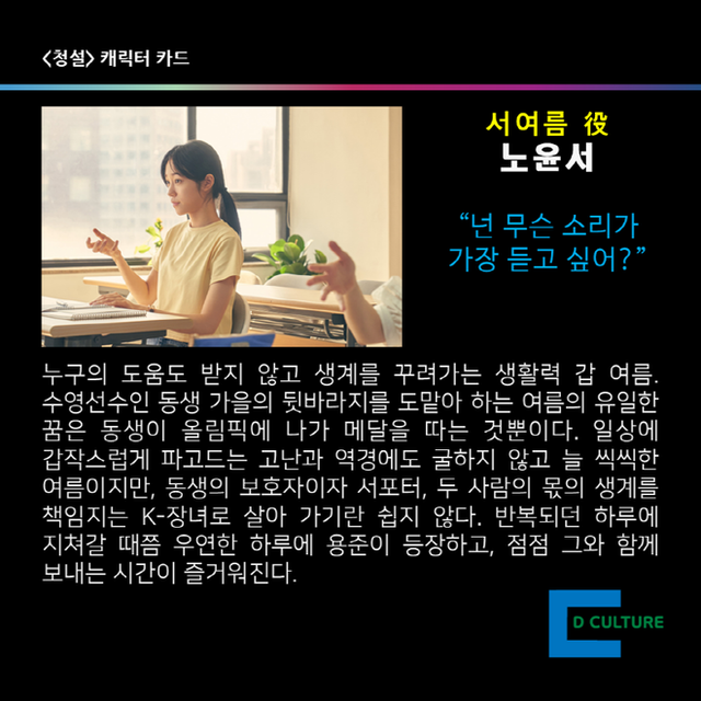 내달 6일 개봉하는 영화 <청설>을 재미있게 볼 수 있도록, 주요 캐릭터에 대한 카드 뉴스를 제작했다. <편집자 주>