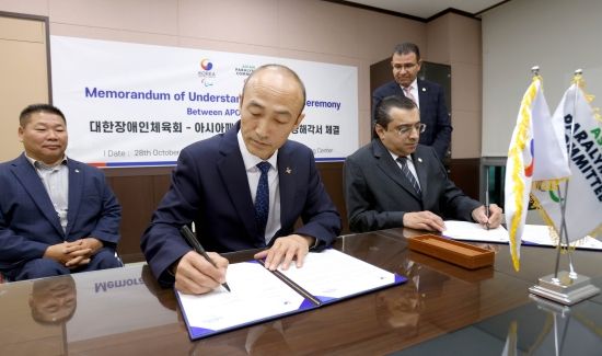 대한장애인체육회와 APC는 28일 이천선수촌에서 이러한 내용의 업무협약(MOU)을 체결했다. 이날 행사에는 대한장애인체육회 정진완 회장, APC 마지드 라시드 위원장, APC 타렉 소우이 CEO 및 양 기관 임직원 10여 명이 참석했다.