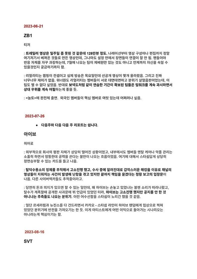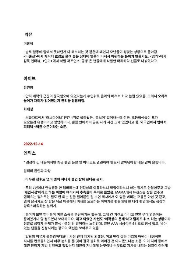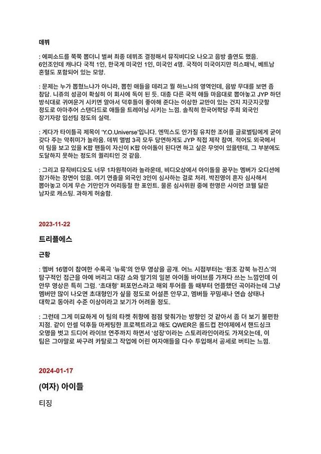 하이브가 평가질한 걸그룹 & 아이돌 목록