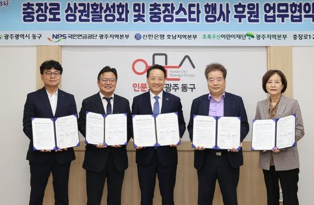 [파이낸셜경제=김영란 기자] 광주 동구는 최근 국민연금공단, 신한은행, 초록우산 어린이재단과 ‘충장로 상권 활성화 및 K-POP 충장스타 후원’을 위한 업무협약을 체결했다고 밝혔다.