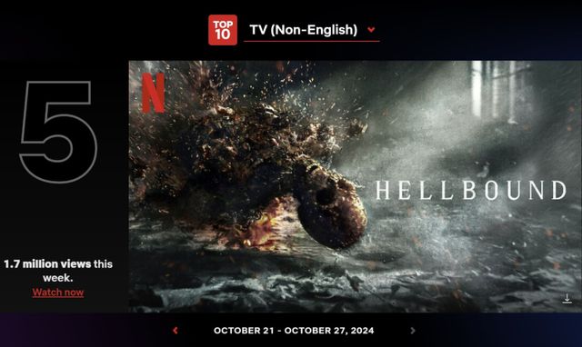 30일 넷플릭스 글로벌 톱10에 따르면 ‘지옥’ 시즌2(이하 ‘지옥2’)는 지난 21일부터 27일까지 170만뷰, 830만 시청시간을 기록하며 TV 비영어권 부문 5위에 랭크됐다.