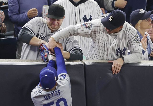 다저스와 양키스의 WS 4차전이 열린 미국 뉴욕 양키스타디움. 양키스 1번 타자 글레이버 토레스가 우측으로 타구를 날렸다. 관중석 가까이로 향한 파울 타구가 될 것으로 보였다. 그러나 다저스 우익수 베츠가 몸을 던져 펜스와 충돌하며 가까스로 글러브에 공을 담았다.