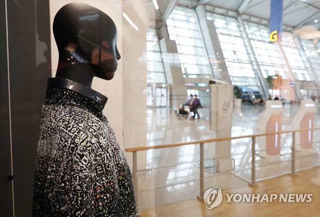 인천공항에 전시된 샤넬 한글 재킷 자료 사진. 김정숙 여사의 해외 순방 관련 의혹을 수사하는 검찰이 2018년 프랑스 순방 때 김 여사가 입은 샤넬 재킷을 전격 확보한 것으로 전해졌다. / 연합뉴스
