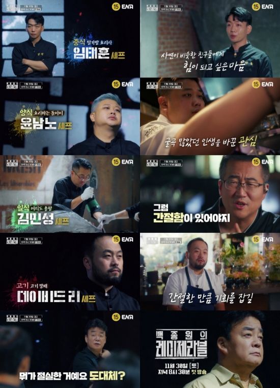 11월 30일 첫 방송되는 ENA 신규 토요 예능 ‘백종원의 레미제라블’은 짧지만 강렬한 서사를 담은 도전자들이 처음이자 마지막으로 찾아온 인생역전의 기회를 잡기 위해 혹독한 스파르타식 미션과 백종원이 사람에게 진심을 다하는 모습을 보여주는 진정성이 담긴 성장 예능이다. 강렬한 캐릭터, 인생역전 서사, 휴먼 다큐의 묘미를 모두 담아낸 특별한 리얼리티의 탄생을 예고한다.