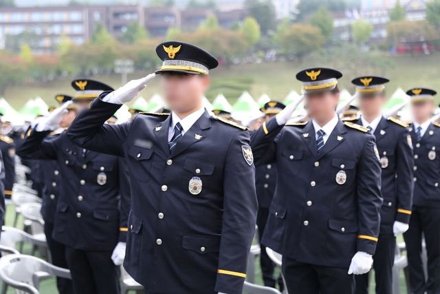 기사의 이해를 돕기 위한 자료 사진, 충북 충주시 중앙경찰학교 대운동장에서 열린 신임경찰 제314기 졸업식에서 졸업생들이 거수 경례를 하고 있다. / 뉴스1