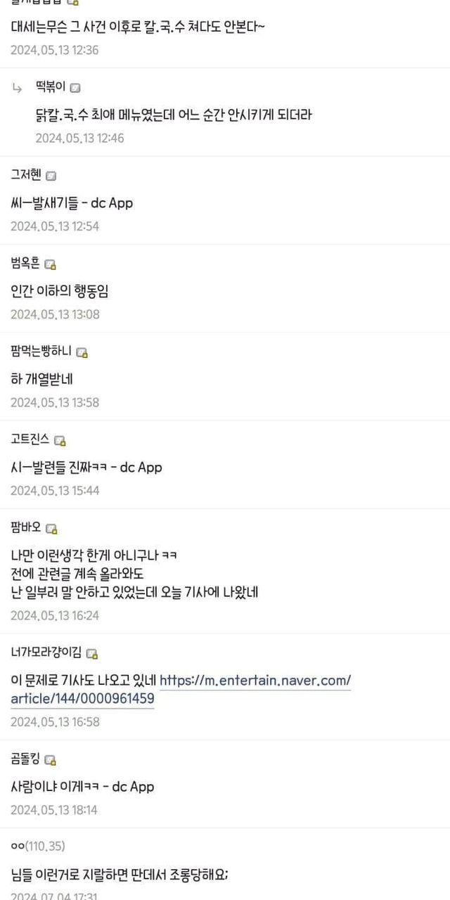 민지 칼국수 논란 이후로 늊팬들에게 칼국수는 금지어였기 때문....