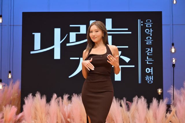가수 화사가 1일 오전 서울 여의도 KBS 아트홀에서 진행된 KBS2 새 음악 여행 리얼리티쇼 ‘나라는 가수’ 제작발표회에서 출연 소감과 비하인드를 전했다. 이날 제작발표회에는 이선희 CP, 화사, 소향, 헨리, 안신애, 구름, 자이로가 참석했다.