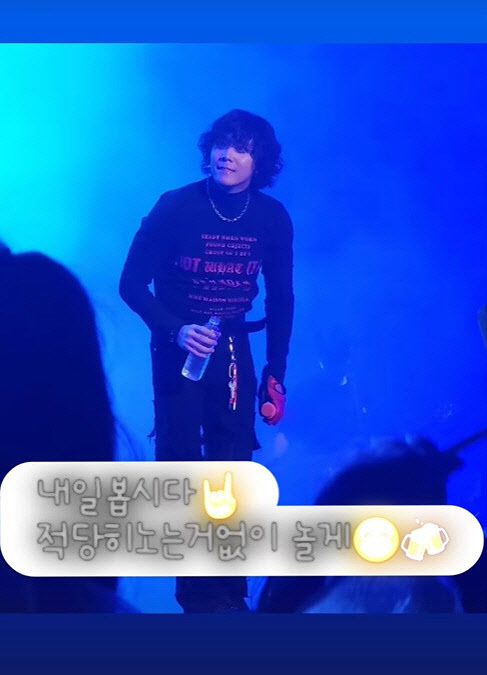 이홍기는 1일 자신의 사회관계망서비스(SNS)에 무대에 오른 자신의 모습을 게재하며 “내일 봅시다. 적당히 노는 것 없이 놀게”라는 글을 올렸다.