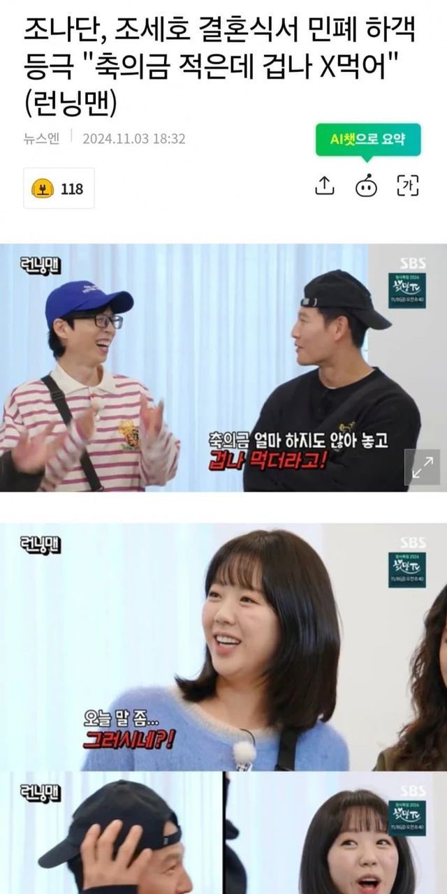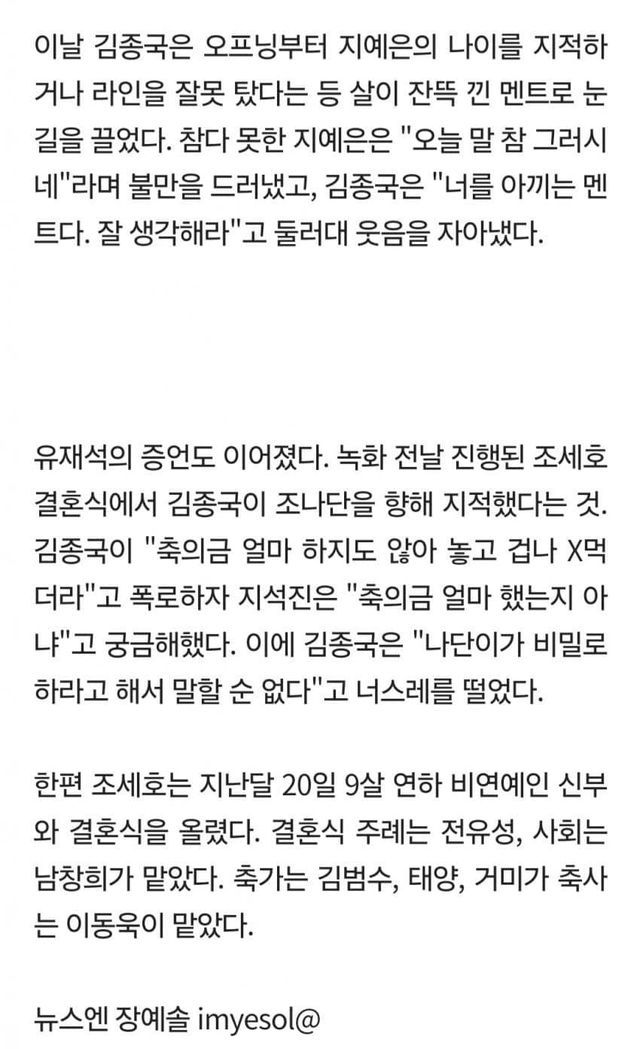 조나단한테 “축의금도 적게냈으면서 겁나 쳐먹더라고”