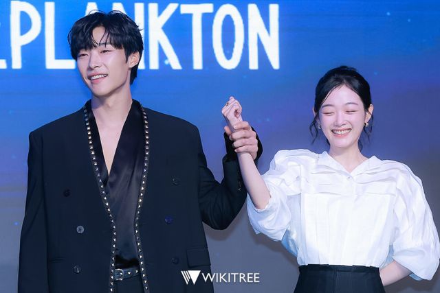 4일 오전 나루 서울 엠갤러리 나루볼룸홀에서 'Mr. 플랑크톤'의 제작발표회가 진행됐다. 제작발표회에 참석한 배우 우도환, 이유미가 포즈를 취하고 있다.