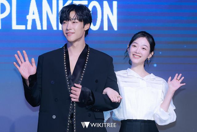 4일 오전 나루 서울 엠갤러리 나루볼룸홀에서 'Mr. 플랑크톤'의 제작발표회가 진행됐다. 제작발표회에 참석한 배우 우도환, 이유미가 포즈를 취하고 있다.
