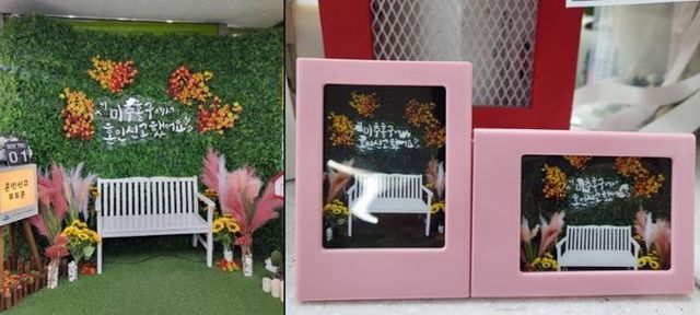 구는 혼인신고를 마친 신혼부부가 종합민원실 1층 포토 존에서 기념 촬영을 진행하면, 해당 사진을 담을 수 있는 미니 자석 액자를 제공한다.