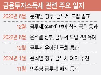 더불어민주당은 4일 내년 도입예정이었던 금투세 폐지를 당론으로 확정했다. 국민의힘과의 협의를 거친 후 이르면 이달 중 법개정을 완료할 것으로 예상된다. 당내에서는 금투세 폐지를 두고 의견이 엇갈렸으나 최근 국내 증시가 약세장을 이어가는 데다 1500만명으로 추산되는 투자자들의 여론을 외면하기 힘들었으리라는 분석이 나온다. 실제 이재명 민주당 대표는 이날 금투세 폐지 결정에 대해 “우리 주식 시장이 너무 어렵다”라며 금투세 폐지를 결정한 배경을 설명했다.