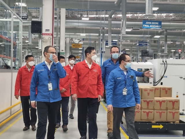 2022年9月,三星电子时任副会长李在镕在参观哈曼国际墨西哥工厂。【图片来源 韩联社】
