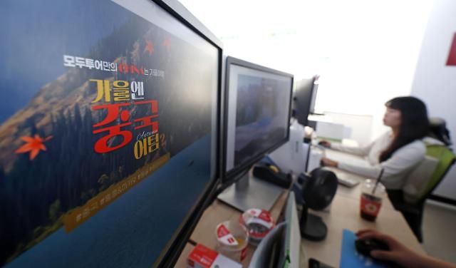 4日下午,位于首尔中区模德旅游总部的中国业务部门员工们正开展工作。【图片来源 韩联社】