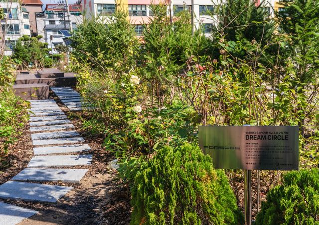 정원 입구의 계단부터 숲 속까지 어디서든 편안하게 쉴 수 있는 자연 친화적인 휴식 공간을 마련해 자연과 더 가까워질 수 있게 했다. 또한, 태양광 에너지를 활용한 자동 관수 시스템을 도입해 공간 관리도 자연 친화적인 방식으로 진행한다.