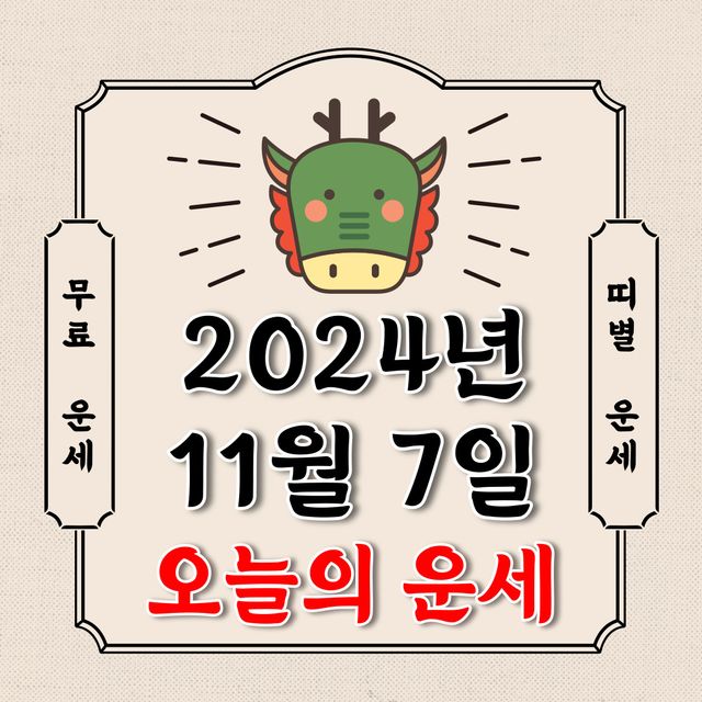 오늘의 운세 2024년 11월 7일 목요일 (음력 10월 7일 / 띠별 운세 / 생년월일 운세)에 대해 알아 보겠습니다.