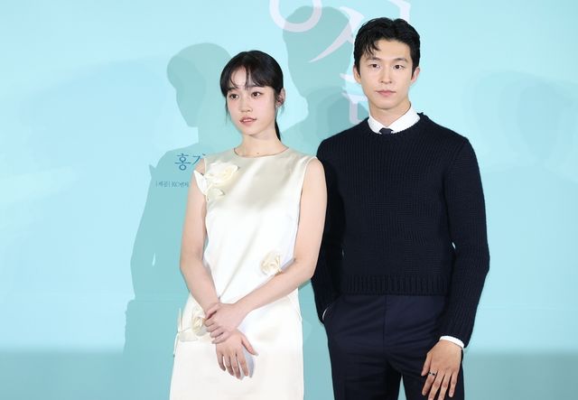 배우 노윤서(왼쪽)와 홍경이 지난달 18일 오전 서울 성동구 메가박스 성수점에서 열린 영화 '청설' 제작보고회에서 포즈를 취하고 있다. / 연합뉴스