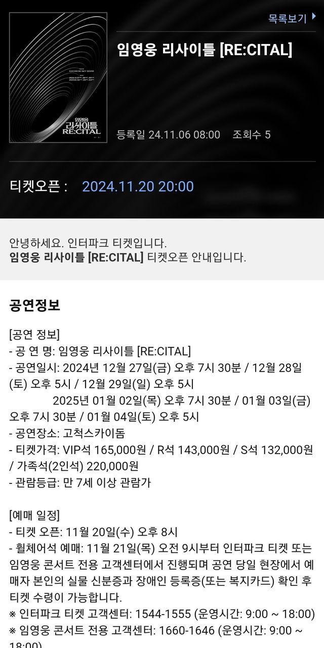 -티켓오픈일: 11월 20일 수요일 오후 8시