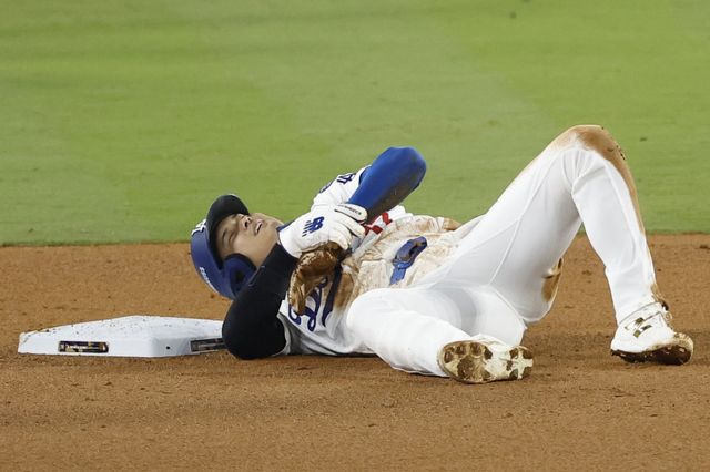오타니는 지난 27일 미국 캘리포니아주 로스앤젤레스 다저스타디움에서 열린 뉴욕 양키스와 미국 메이저리그(MLB) 월드시리즈(WS) 2차전 7회 말 2루 도루를 시도하다 어깨를 다쳤다. 오타니는 고통스러운 표정을 지으며 교체됐다.