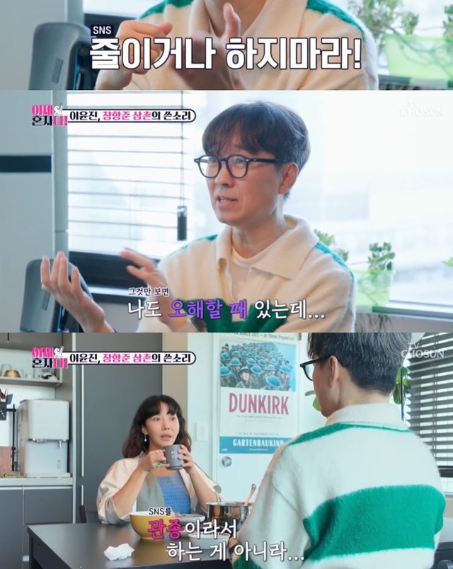 장항준은 "이게 유명한 사람들이 좋을 땐 한없이 좋은데, 안 좋은 일에 연루되면 그때부터 꼬리표처럼 따라다닌다"고 공감을 표하며 "그래서 네게 권하고 싶은 건 SNS를 줄이던지 하지 않는 거다"라고 돌직구를 날렸다.