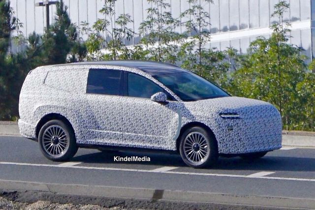 Kindelauto가 SNS 채널을 통해 공개한 아이오닉 9 위장막 테스트카 스파이샷을 보면, 차량의 실루엣과 전반적인 디테일을 확인할 수 있는 것이 특징이다.