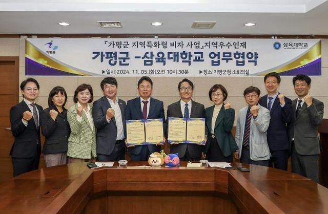협약식에는 서태원 가평군수, 제해종 삼육대학교 총장, 김종성 가평군의회 부의장 등 주요 관계자들이 참석해 외국인 우수 인력 유치를 위해 상호 협력하기로 했다.