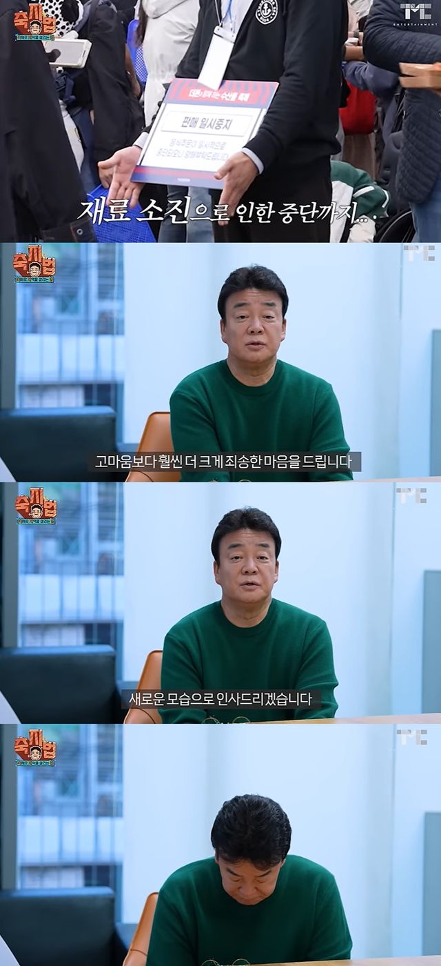 7일 백종원의 유튜브 채널 '축지법'에는 '죄송한 마음을 담아 이 영상을 올립니다'라는 제목의 영상이 게재됐다.