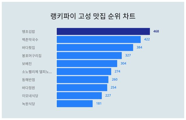▲고성 맛집 트렌드 지수 분석 결과 ⓒ랭키파이