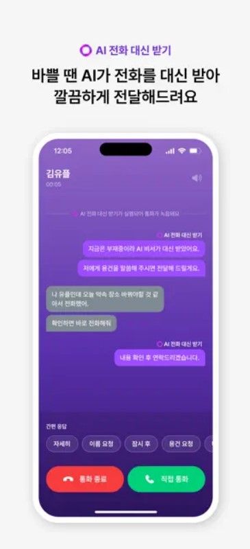 전화를 받을 수 없는 상황이나 모르는 번호라 받고 싶지 않을 때 유용한 '전화 대신 받기'가 대표적이다.