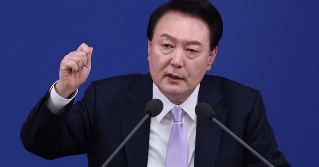 윤석열 대통령이 7일 서울 용산 대통령실 청사 브리핑실에서 열린 대국민 담화 및 기자회견에서 취재진의 질문에 답하고 있다. / 뉴스1