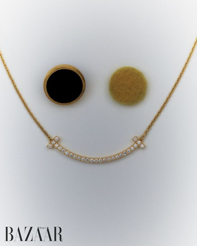 18K 옐로 골드에 라운드 브릴리언트 다이아몬드를 세팅한 ‘티파니 T 스마일’ 펜던트는 Tiffany&Co..