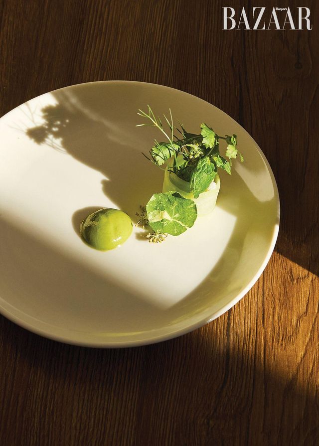 미학과 함께 미식의 경험도 전하던 피크닉에서 제로 컴플렉스가 자리를 비운 후 어떤 레스토랑이 자리할지 많은 관심이 일었다. 전시 «정원 만들기»로 인해 생겨난 정영선 조경가의 정원과 어울리는 팜투테이블 기가스는 피크닉을 더 완전한 공간으로 만드는 모습이다. “‘셰파니스’의 앨리스 워터스나 ‘블루힐’의 댄 바버 같은 셰프를 흠모해왔던 사람으로서, 직접 농사를 지으면서 음식을 완성하는 기가스의 정하완 셰프 음식을 접하고 놀랐습니다. 삶은 완두콩 하나를 먹으며 눈물을 흘리는 희한한 경험을 한 뒤 그 이유를 알고 싶어 농장에도 방문했습니다. 오래된 한옥집에서 가족과 함께 만들어가는 ‘와니농장’을 보고 나니 앞으로가 더 기대됩니다.” 김범상 대표의 열렬한 추천 이유는 기가스를 설명하는 충분한 단서가 된다. 독일의 미쉐린 3스타 레스토랑 ‘라비에’ 등 유럽의 레스토랑에서 일하던 정하완 셰프는 결국 땅을 찾아 한국으로 회귀했다. 자연을 테이블에 올려 손님들에게 전달해주려는 확고한 의지를 갖고서. 그래서 요리를 정해놓고 필요한 재료를 재배하는 것이 아니라 날씨나 자연의 변화에 순응하며 키운 농작물로 요리를 만든다. 신선한 허브와 채소, 흙맛과 산미가 도는 염소 치즈 등을 사용해 숲속의 맛을 표현한다.