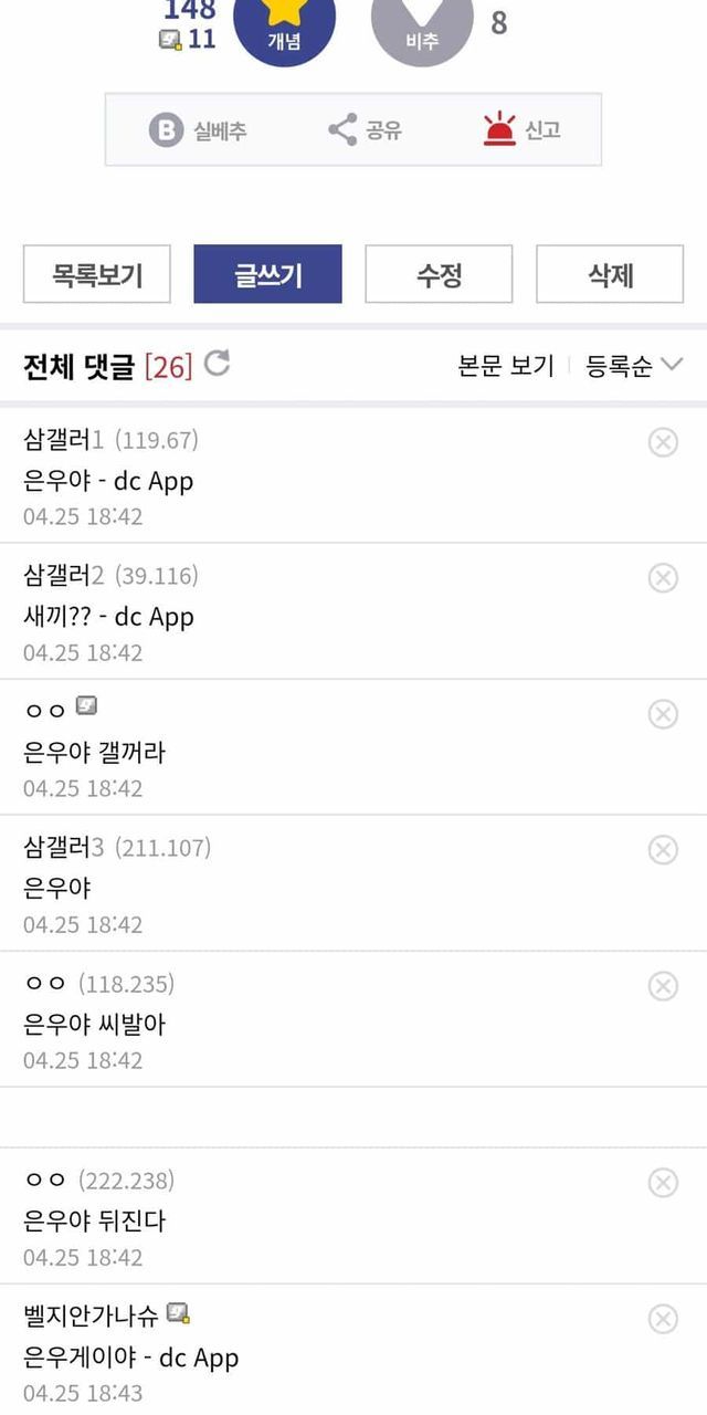만루홈런 한방이면 차은우보고 갤 끄라고 가능함