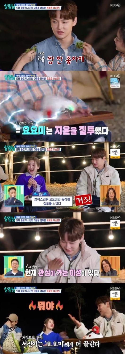 [메디먼트뉴스 김민기 기자] 9일 방송된 KBS2 예능 프로그램 ‘살림하는 남자들2’(이하 ‘살림남2’)에서는 박서진, 요요미, 홍지윤이 참여한 캠핑에서 진실 게임을 통해 서로의 감정을 엿보는 흥미진진한 삼각관계가 그려졌다.