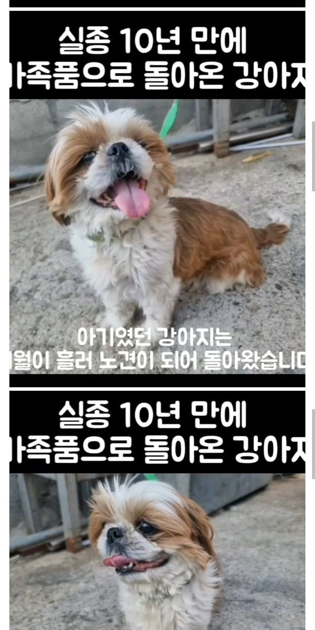 실종 10년만에 가족 품으로 돌아온 강아지,,