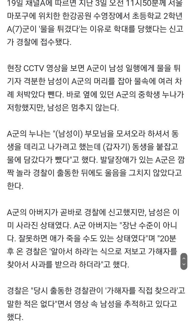 발달장애도 있다는데 물에 대한 공포와 저날 사건이 평생 트라우마로 남을듯.