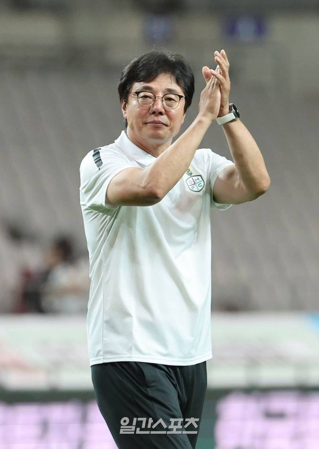 프로축구 '하나은행 K리그1 2024' 22라운드 FC서울과 대전하나시티즌의 경기가 10일 오후 서울 마포구 서울월드컵경기장에서 열렸다. 경기 후 대전 황선홍 감독이 서울 서포터즈 앞에서 인사를 하고 있다. 상암=김민규 기자 mgkim1@edaily.co.kr /2024.07.10/