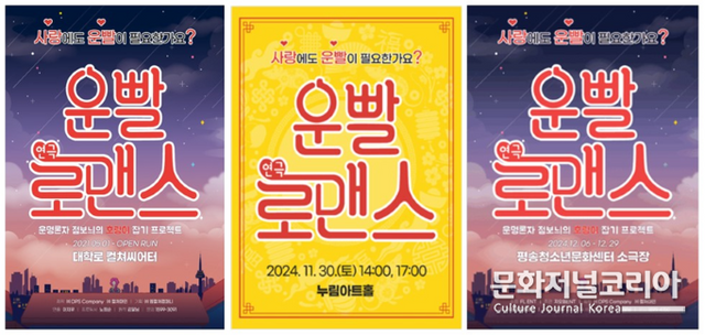 문화저널코리아 김영일 기자 | 대학로 대표 코미디 연극으로 인기몰이 중인 ‘운빨로맨스’가 화성과 대전으로 공연 투어에 나선다. 화성 공연은 오는 11월 30일 모두누림센터 누림아트홀에서, 대전 공연은 12월 6일부터 12월 29일까지 대전 평송청소년문화센터 소극장에서 공연된다.