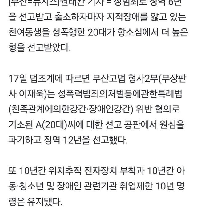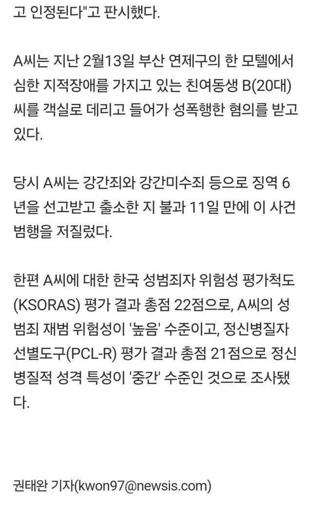 성범죄 위험도가 높음 수준에 성폭행으로 6년 징역 살고 나오자마자 지 친동생 성폭행....