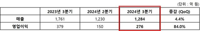 [프라임경제] 그라비티는 2024년 3분기 매출 1284억원, 영업익은 276억원으로 전년 동기 대비 매출과 영업이익은 각각 27.1%, 27.3% 감소했다. 당기순이익은 224억원으로, 전년 동기 216억원과 비교해 비슷한 수치를 기록했다.
