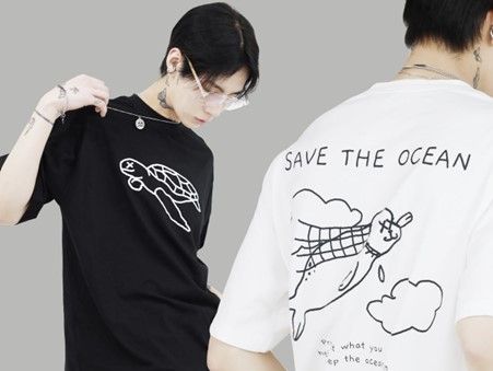 임소현: 하지만 여전히 시장에서의 상품성은 없었어요. 그만큼 버려진 걸 그대로 재활용하는 업사이클링이 돈이 많이 들어요. 다음에 만든 것이 멸종위기 해양 생물을 담은 티셔츠였어요. 오가닉 코튼 원단을 활용했어요. 오가닉 코튼 원단은 3년간 농약이나 화학 비료를 사용하지 않은 농지에서 농약이나 화학비료를 사용하지 않고 재배 생산된 면화로, 토양의 오염을 최소화할 수 있어요.