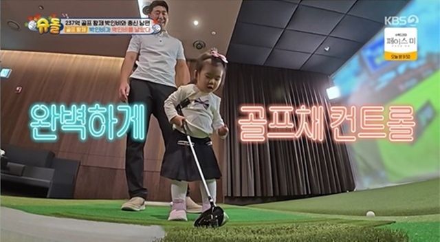 이와 함께 인서는 키즈 카페 대신 실내 스크린 골프장으로 직진하며 골프와 익숙한 ‘골프 명가’ 베이비의 모습을 보였다. 인서는 엄마, 아빠에게 배운 시선 처리와 퍼팅까지 재현하며 남다른 골프 DNA를 뽐냈다. 특히 인서는 스윙 후 골프채를 번쩍 드는 세리머니와 카메라 삼촌들에게 박수까지 유도하는 등 경기 매너까지 갖춘 모습으로 감탄을 자아냈다. 박인비는 “6년 뒤에 인서랑, 둘째 딸 데리고 골프 나가면 좋겠다”라며 바람을 드러냈다. 또한 이날 방송에서 최초로 박인비의 둘째 딸 출생 사진이 공개돼 네 가족이 된 박인비 가족의 새로운 출발로 응원을 자아냈다.