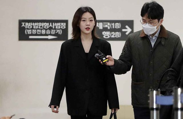만취 상태로 음주운전을 하다가 사고를 낸 혐의로 재판에 넘겨진 배우 김새론이 지난해 4월 5일 오전 서울 서초구 서울중앙지법에서 열린 도로교통법 위반(음주운전) 등 혐의 선고 공판에 출석하고 있다. / 뉴스1