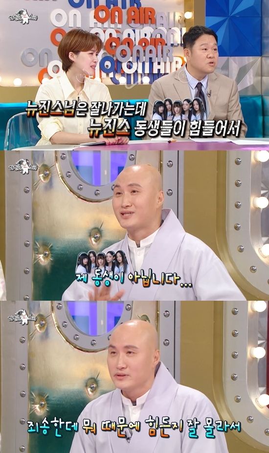 김구라가 "뉴진스님은 잘 나가는데 뉴진스 동생들이 좀 힘들지 않냐"라고 하자 뉴진스님은 "제 동생이 아니다"라며 당황하는 모습과 함께 선을 그었다.