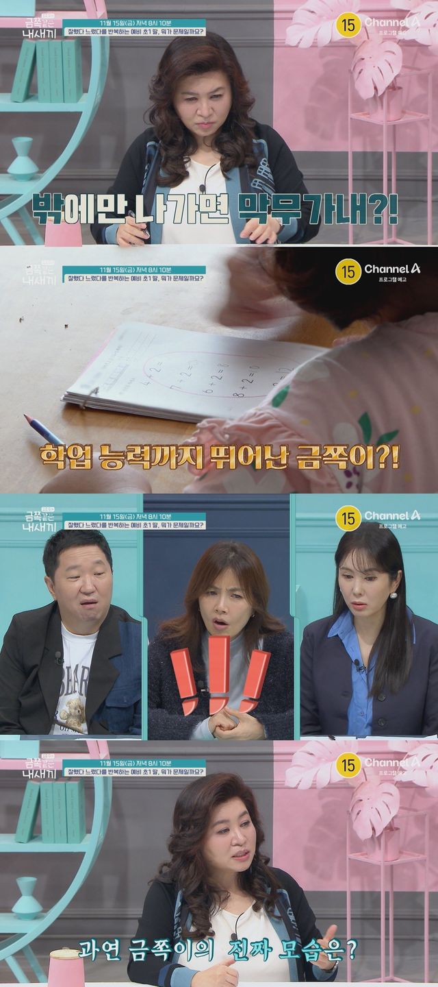 관찰된 일상에서는 눈을 뜨자마자 독서로 하루를 시작하며 엄마 말을 잘 따르는 금쪽이의 모습이 눈길을 끈다. 하지만 어린이집에 도착하자마자 난데없이 바닥에 드러눕거나, 선생님의 음식을 뺏어 먹으며 혼이 나도 깔깔거리며 웃기만 하는 등, 집에서와는 전혀 다른 행동을 보인다. 엄마와 같이 있을 때는 모범생 같았던 금쪽이의 문제아적인 모습을 처음 본 엄마는 놀라 당황스러운 표정을 감추지 못한다.