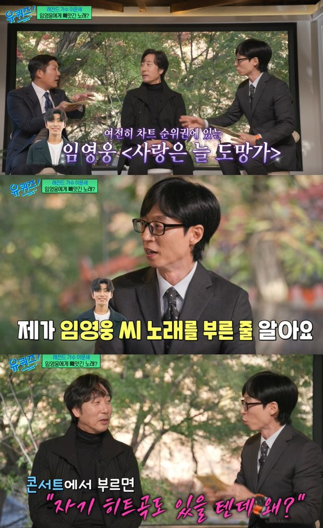 수많은 후배들이 이문세의 명곡을 리메이크 했던 가운데 여전히 차트 순위권에 있는 임영웅의 '사랑은 늘 도망가'가 언급됐다.